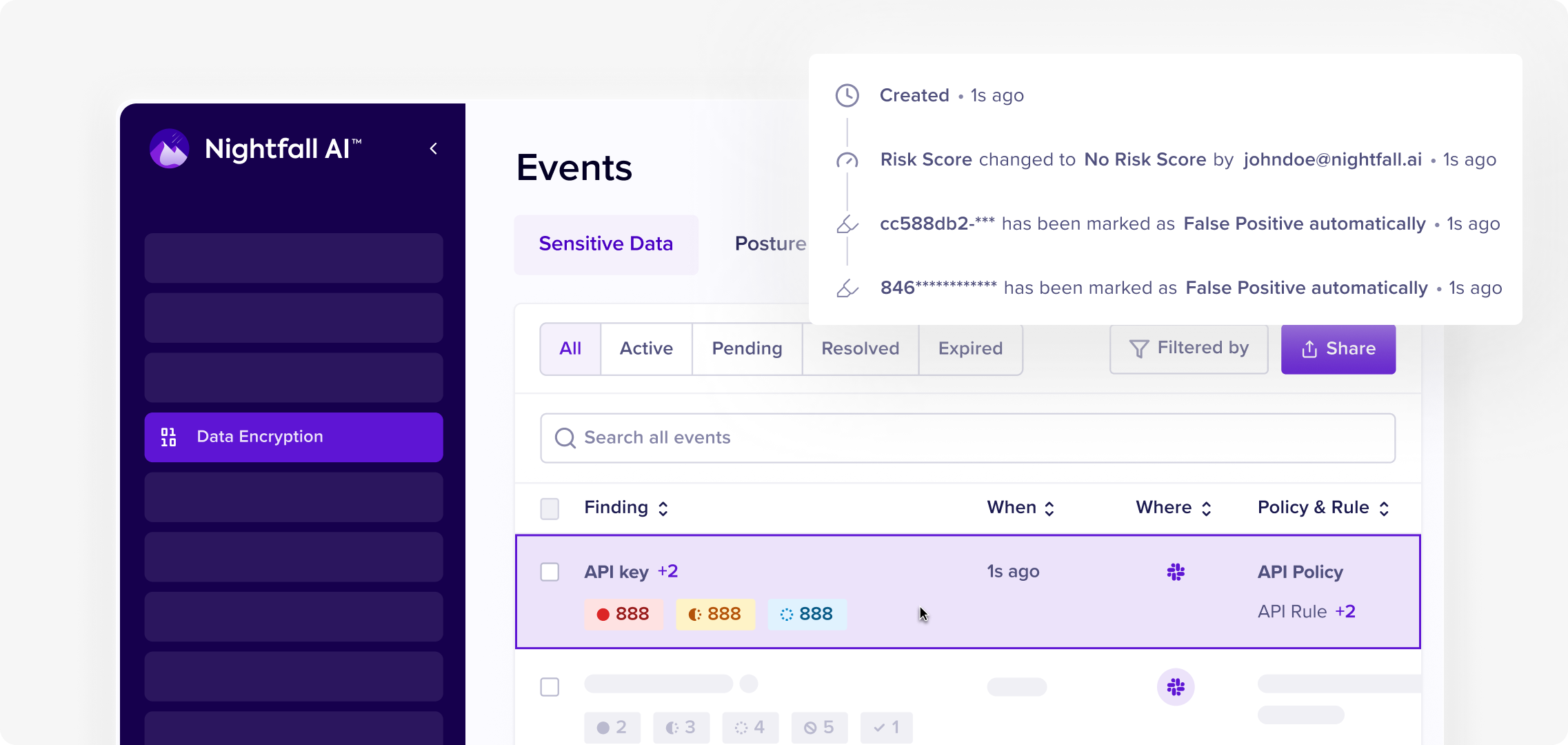 While your team works in real-time, your data protection shouldn't lag behind. Nightfall monitors SaaS applications as content is shared, messages are sent, and files are created or updated - detecting and stopping sensitive data exposure instantly, not hours or days later when the damage is done.
